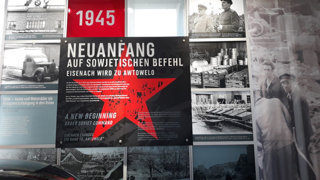 En BMW AG in München dan? Formeel heeft de vorige eigenaar van deze fabriek er niets meer over te zeggen. De SMAD heeft als gevolg van de gemaakte besluiten tussen de geallieerden het BMW Firmavermogen Eisenach in beslag genomen. Toch zal BMW AG nog van zich laten horen…