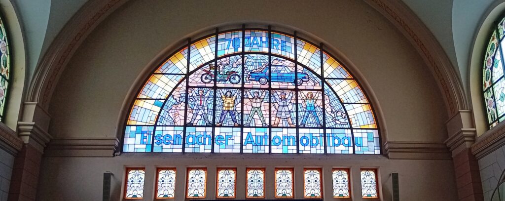 Dit beëindigt onze wandeling door het museum Automobile Welt Eisenach in de nog resterende gebouwen van Automobil Werk Eisenach. Neem een appartement in het centrum van Eisenach, ze zijn goed en spotgoedkoop. En als je oplet heb je gratis parkeren op een afgesloten terrein. Je woont midden tussen de winkels en de restaurants. En het museum is een kwartier lopen.