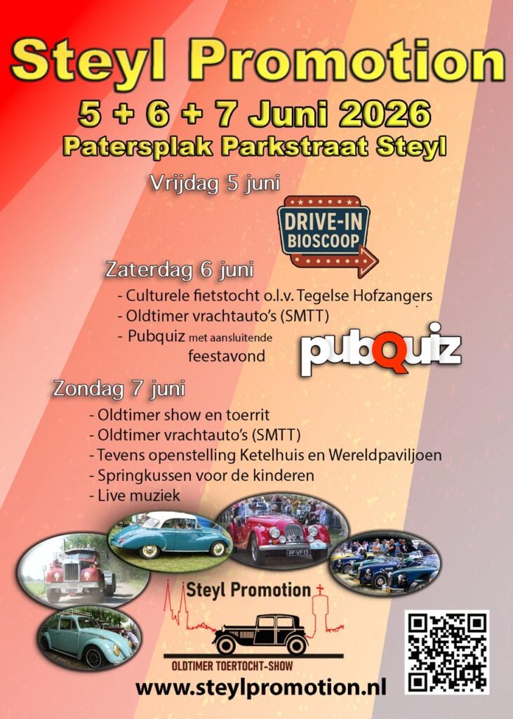 De zondag van Steyl Promotion staat traditioneel in het teken van oldtimers. Opgesteld staan de auto’s op De Patersplak aan de Parkstraat in Steyl. De deelnemers aan Steyl Promotion worden verwacht tussen 10.00 uur en 11.00 uur. Ze vertrekken daarna voor een toertocht door de regio Limburg en zullen in de loop van de middag hier weer terugkeren om hun sieraad aan de toeschouwers te tonen.